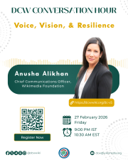 | 11:28, 16 February 2026 | DCW Conversation Hour February 2026.png (file) | 1.34 MB | Aafi (talk | contribs) | Uploaded a work by Mehreen from Mehreen with UploadWizard | 1 | |